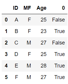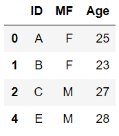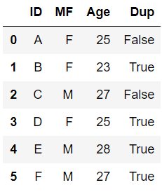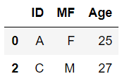 # MF, Age 2개의 칼럼을 지정하여 중복되는 행 제거 df.drop_duplicates(['MF', 'Age'])